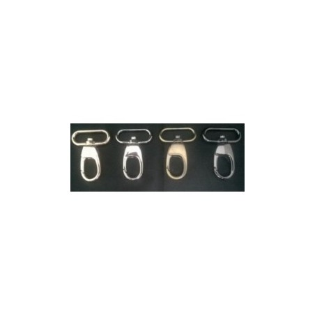 Mosquetón de cabeza giratoria con acabado en níquel y Oro Viejo. Elemento o aplique ideal para unir las correas y asas en bolsos, bandoleras, cartera, entre otros.