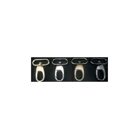 Mosquetón de cabeza giratoria con acabado en níquel y Oro Viejo. Elemento o aplique ideal para unir las correas y asas en bolsos, bandoleras, cartera, entre otros.