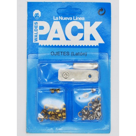 Ojetes 01 ml, ideal para reforzar agujeros practicados en el cuero, telas, zapatos, lonas y otros tejidos, y por donde luego se van a pasar cordones, tiras, tiretas, cuerdas. Incluye troquel de golpe para colocación manual.